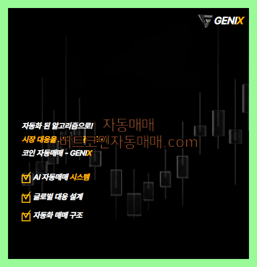 코인 코인자동거래와 AI 코인자동거래를 고민하고 있다면 지닉스 알고리즘 매매 GENIX를 통해 직접 경험해보시기 바랍니다. 텔레그램 1:1 문의 : genix_trading